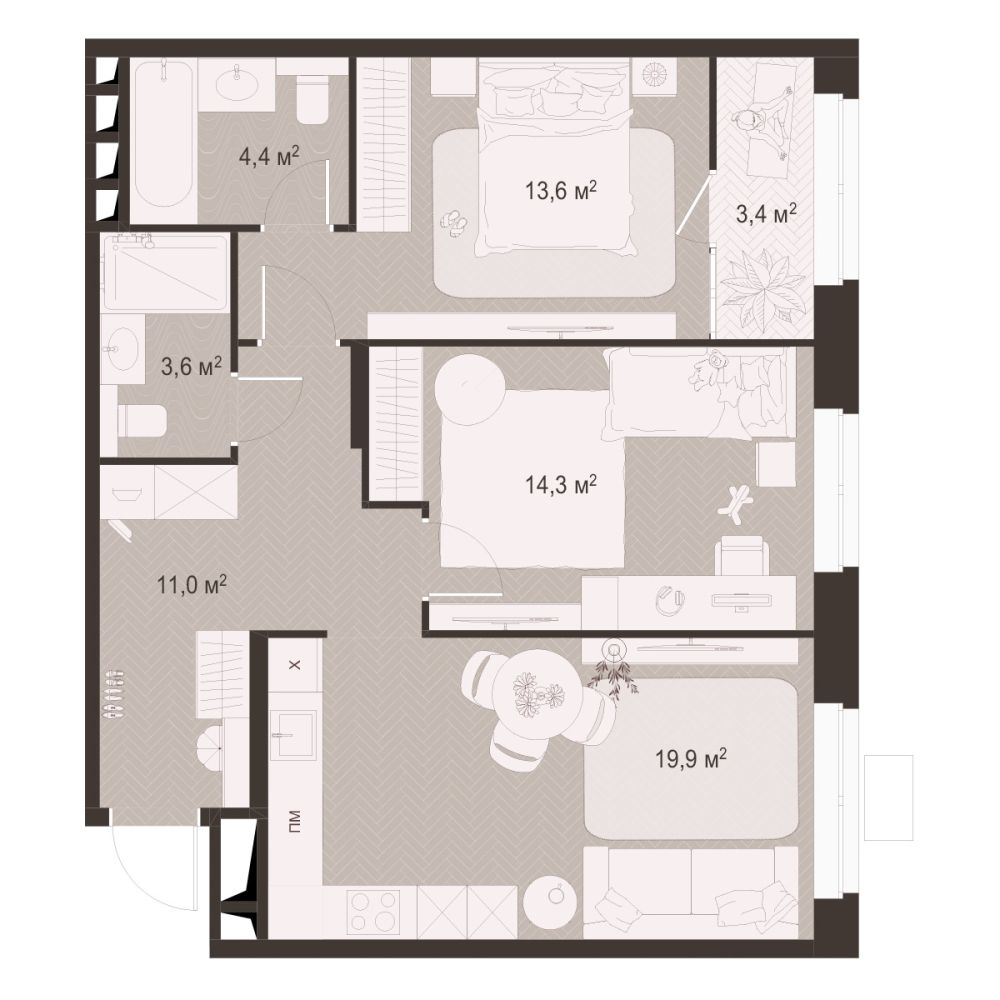 2 -комнатная 79.9 м2 Уточнить стоимость