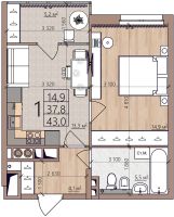 1 -комнатная 43.3 м2 Уточнить стоимость