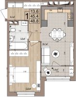 1 -комнатная 48.8 м2 Уточнить стоимость