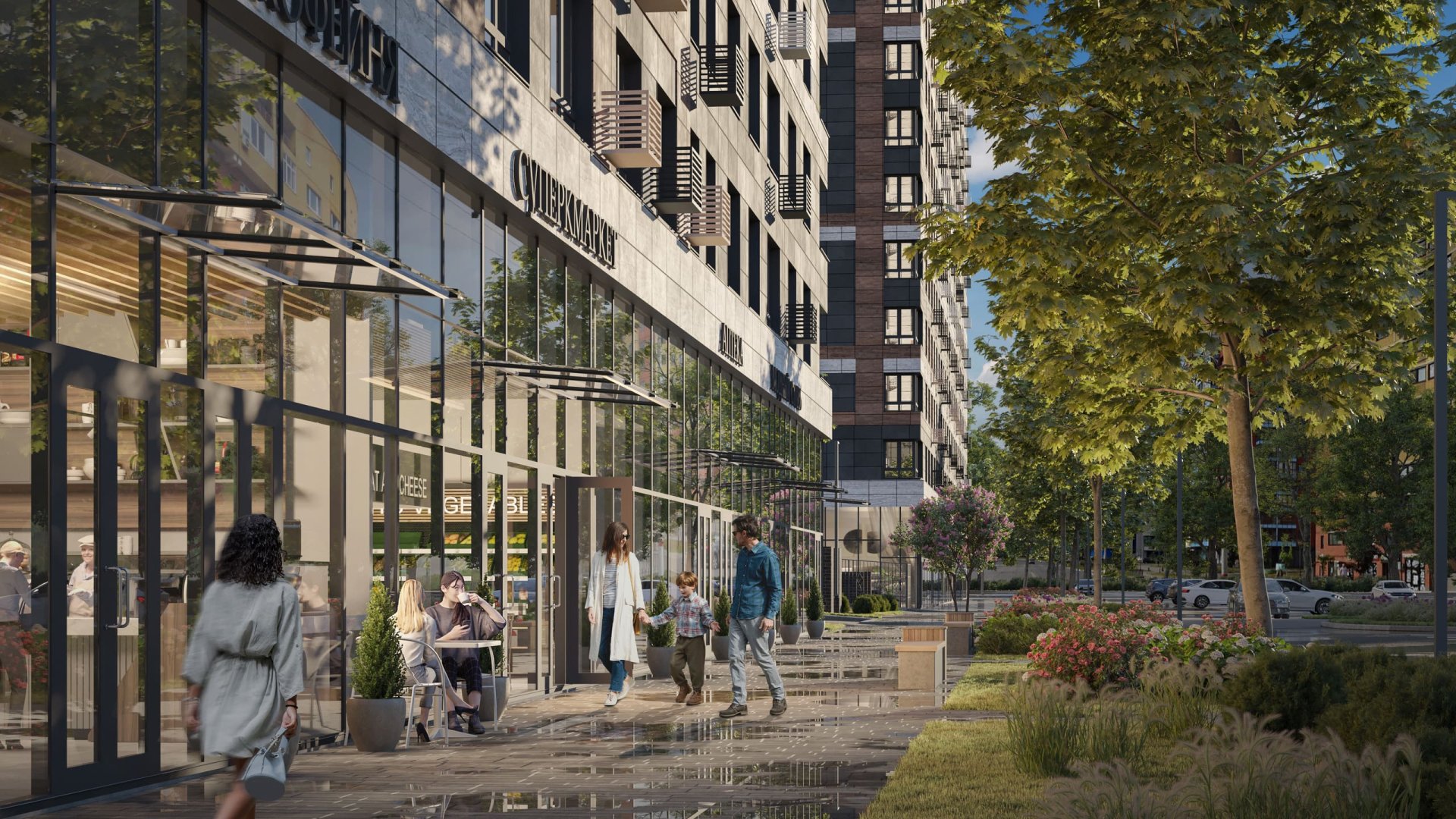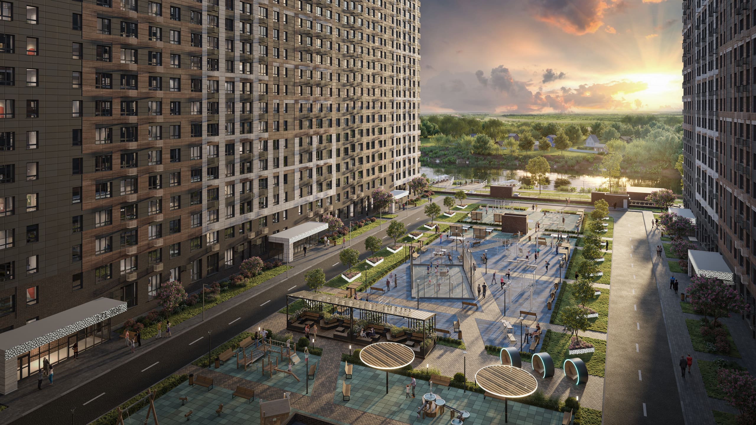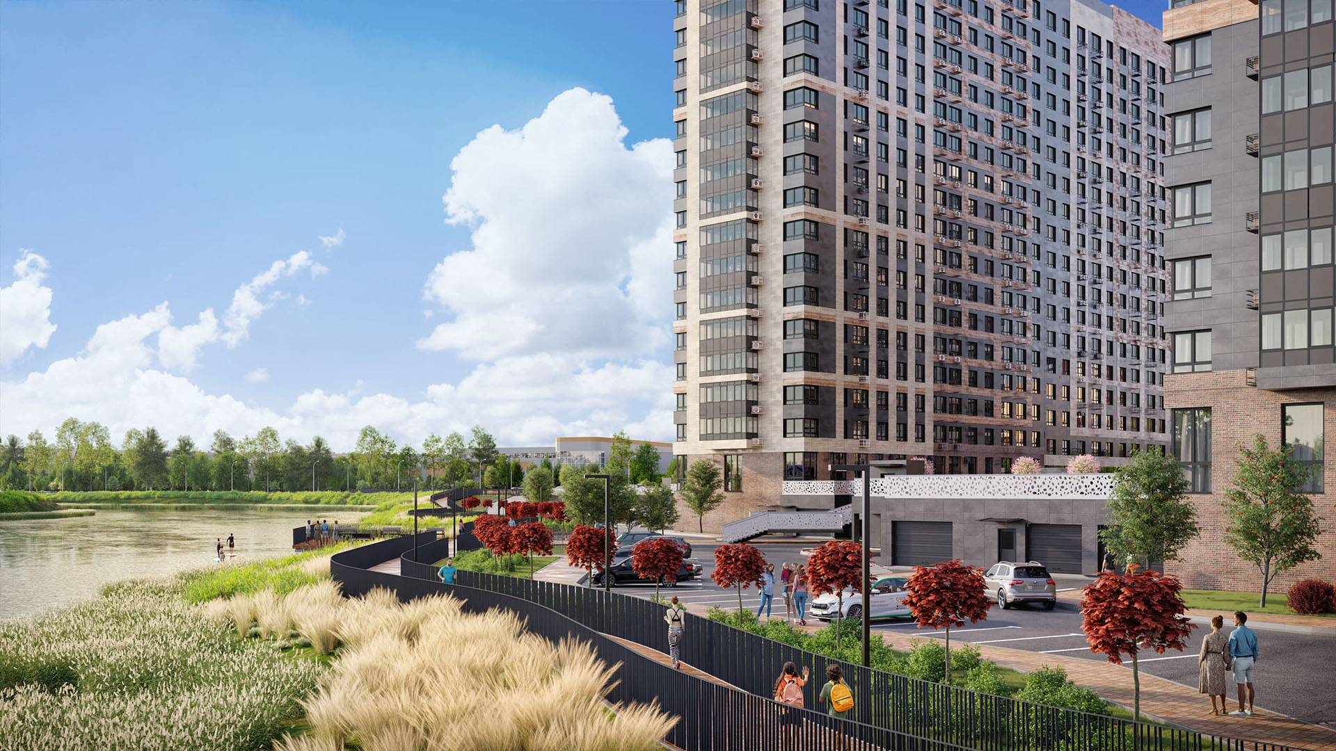 Основное озеленение комплекса будет выполнено на пешеходном бульваре, который переходит в благоустроенную и красивую набережную с зонами для активного отдыха, спокойного времяпрепровождения и занятий спортом.