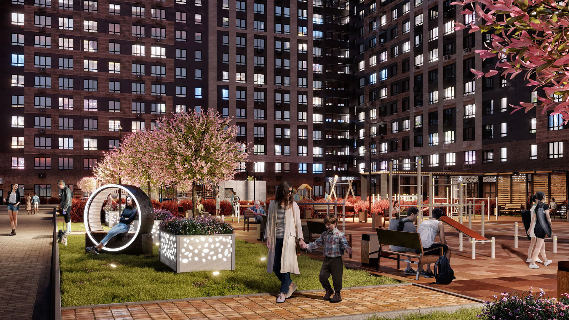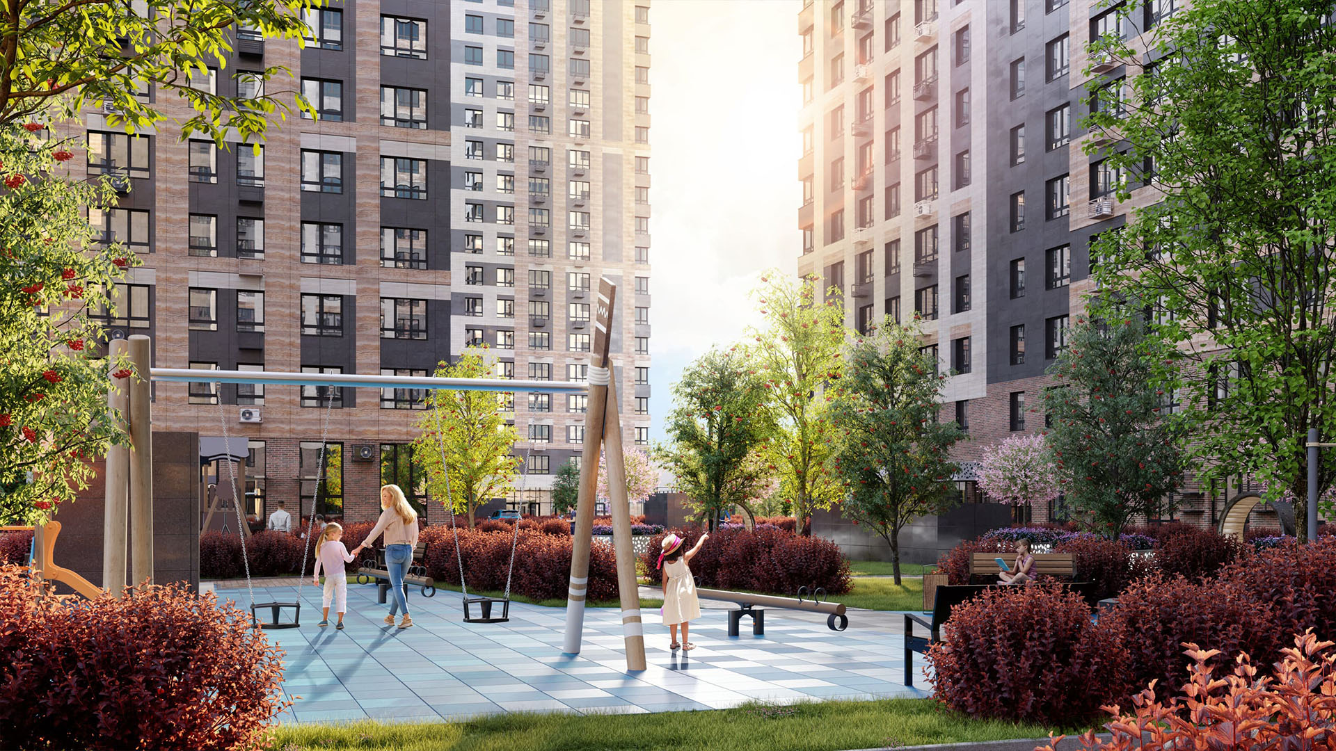 Вся территория площадки ЖК разделена на зоны в зависимости от интересов и возраста детей, что особенно оценили мамы с маленькими детьми, которым важна возможность уединения и тишины.