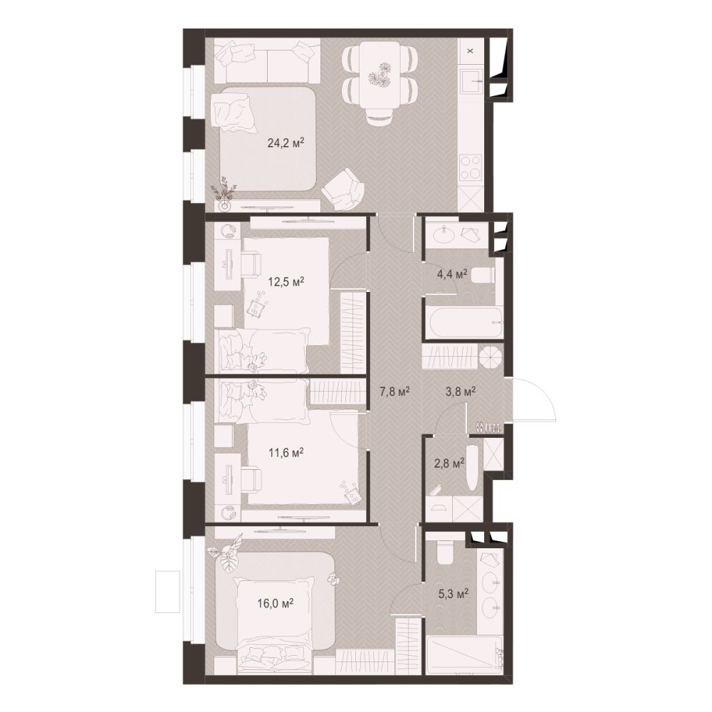3 -комнатная 88.4 м2 Уточнить стоимость