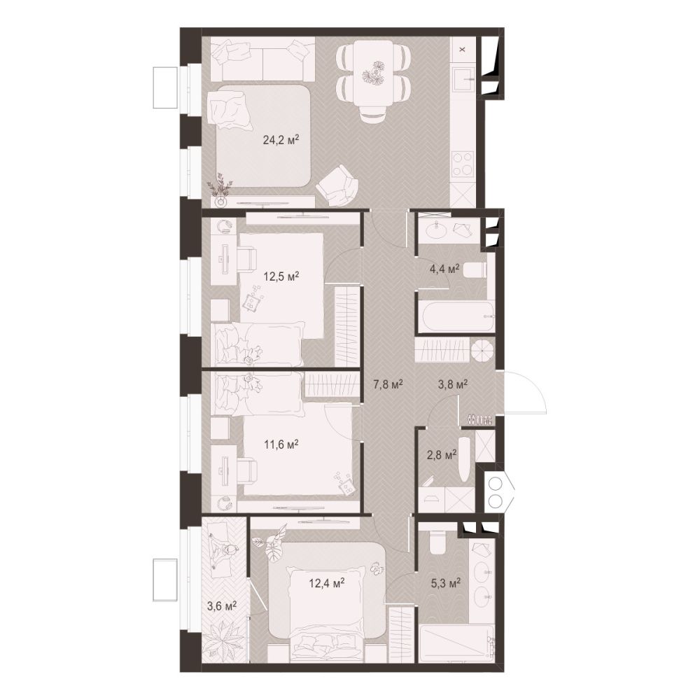 3 -комнатная 83.6 м2 Уточнить стоимость
