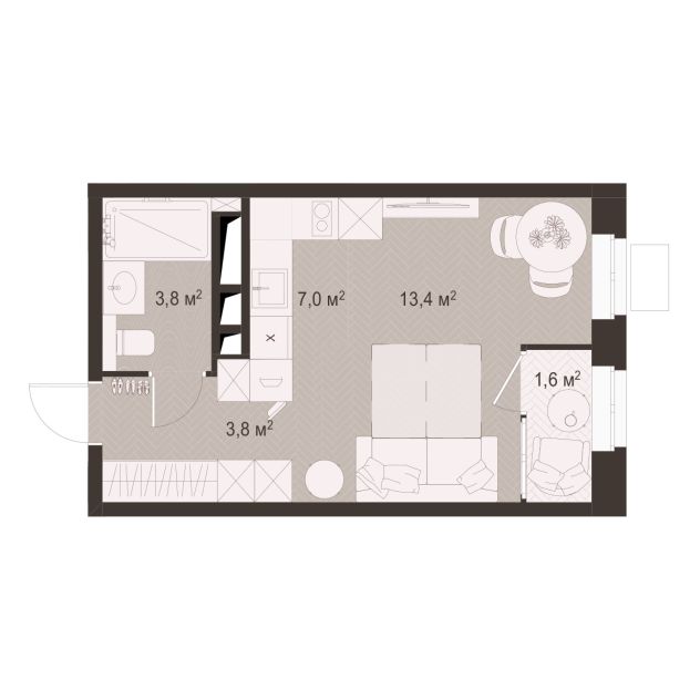 Квартира Студия 29.6 м2