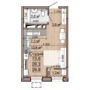 Квартира №5, 1-комнатная 43.1 м2