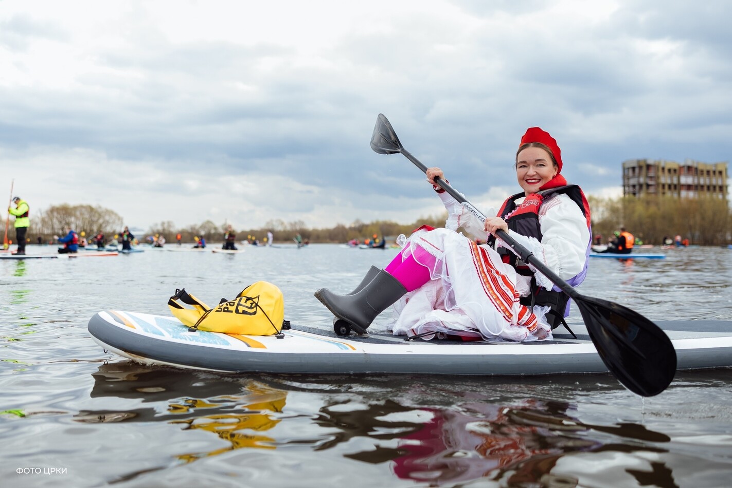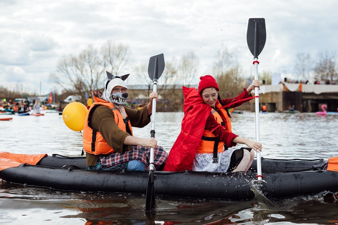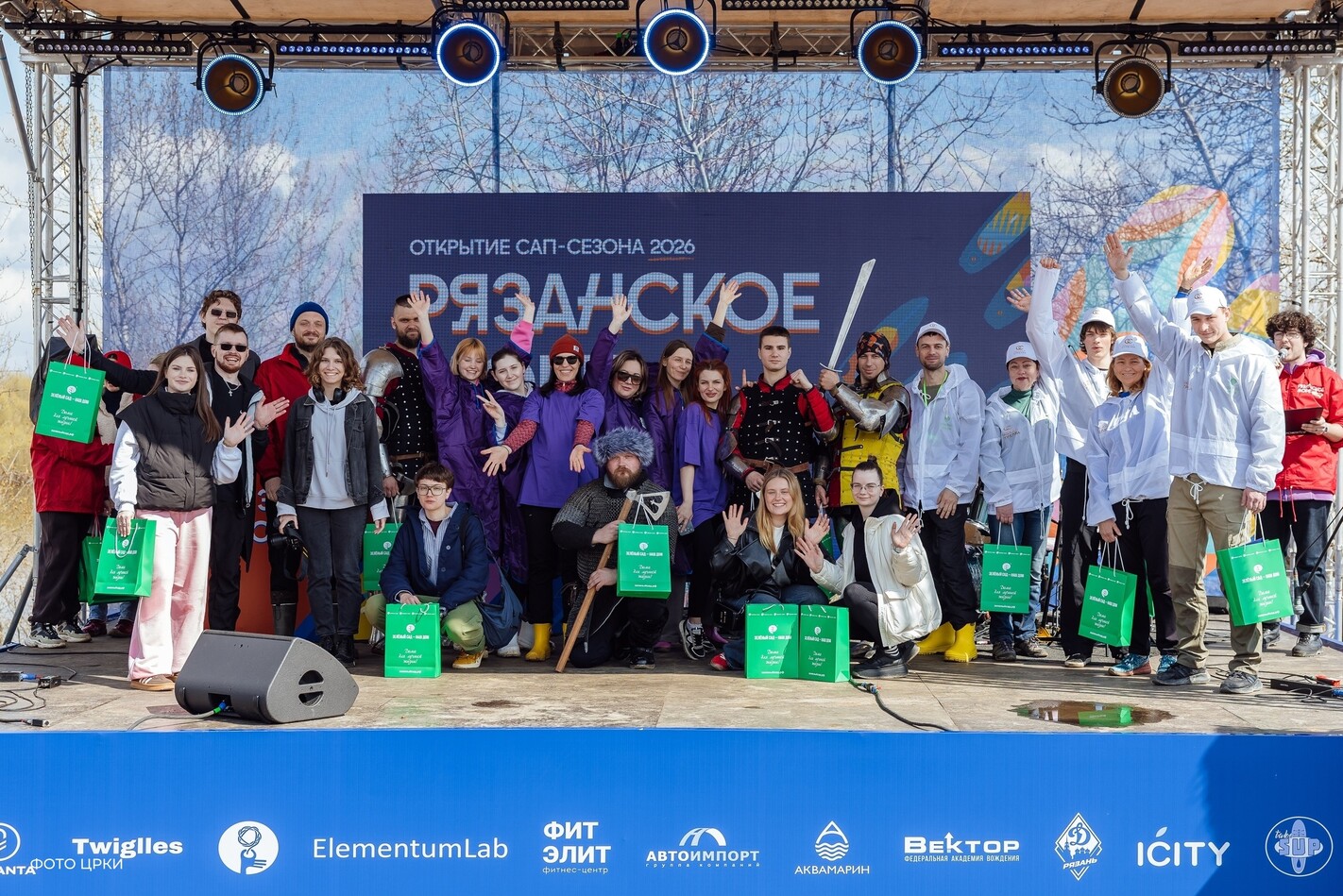 Сапбордисты из Рязани, Тулы и Москвы преодолели дистанцию в 400 метров в свободном темпе, зрители фестиваля тем временем любовались костюмами спортсменов. Ведьма с чёрным котом, лягушка, пчеловод с пчелой, Красная Шапочка и Волк… Участники спортивного праздника подарили всем присутствующие отличное настроение.