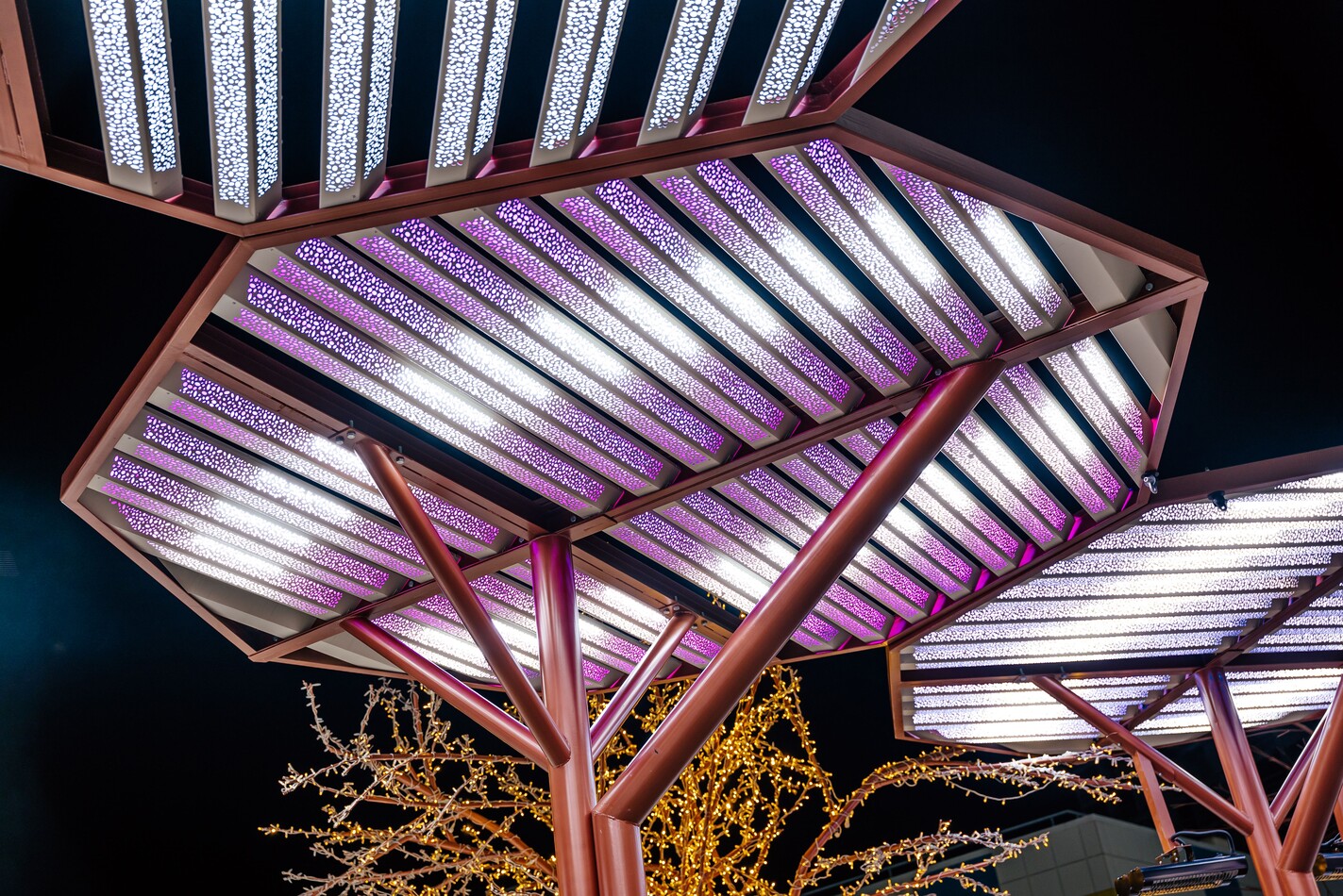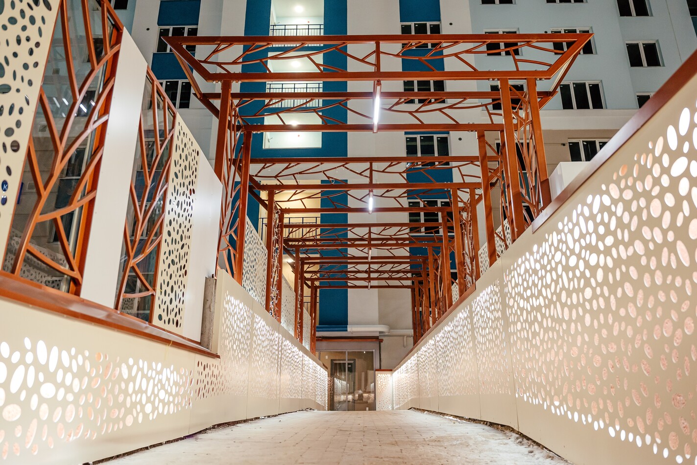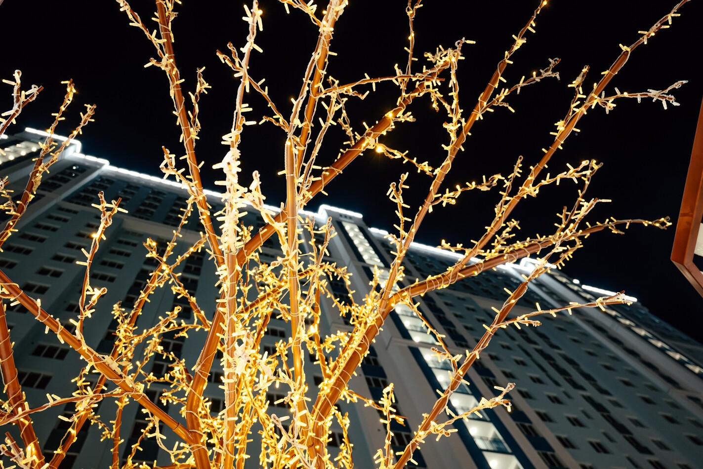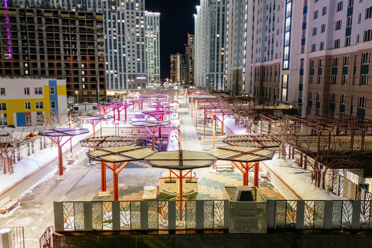 - Скамейки, фонари, а также световые деревья и навесы у нас собственного производства, - подчеркнул Сергей Котусов. - Причём в этом доме мы впервые смонтировали RGB-подсветку, которая будет радовать жильцов, создавать им настроение, а также подстраиваться под движение струй фонтана (он заработает в тёплое время года). Всё будет очень красиво!