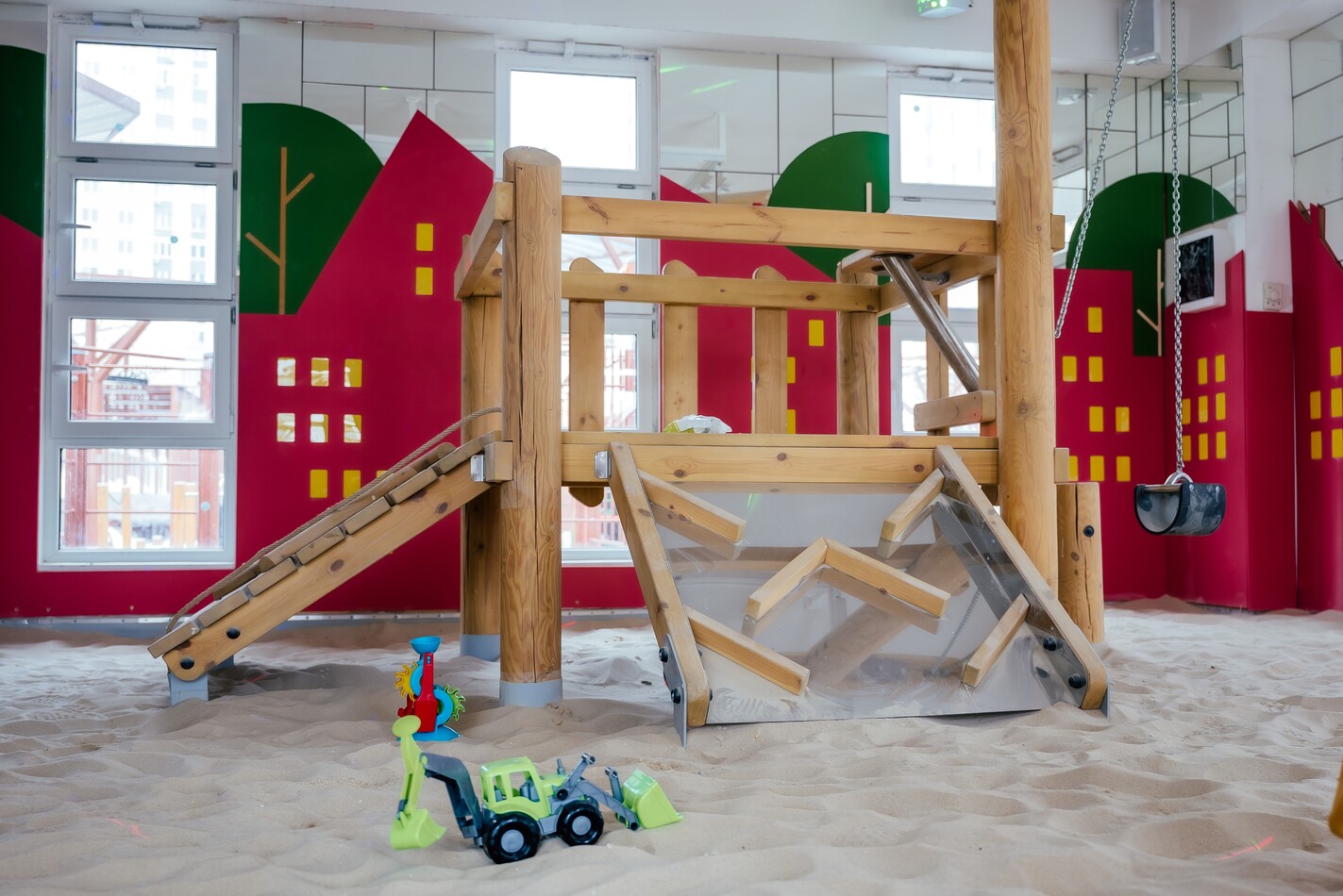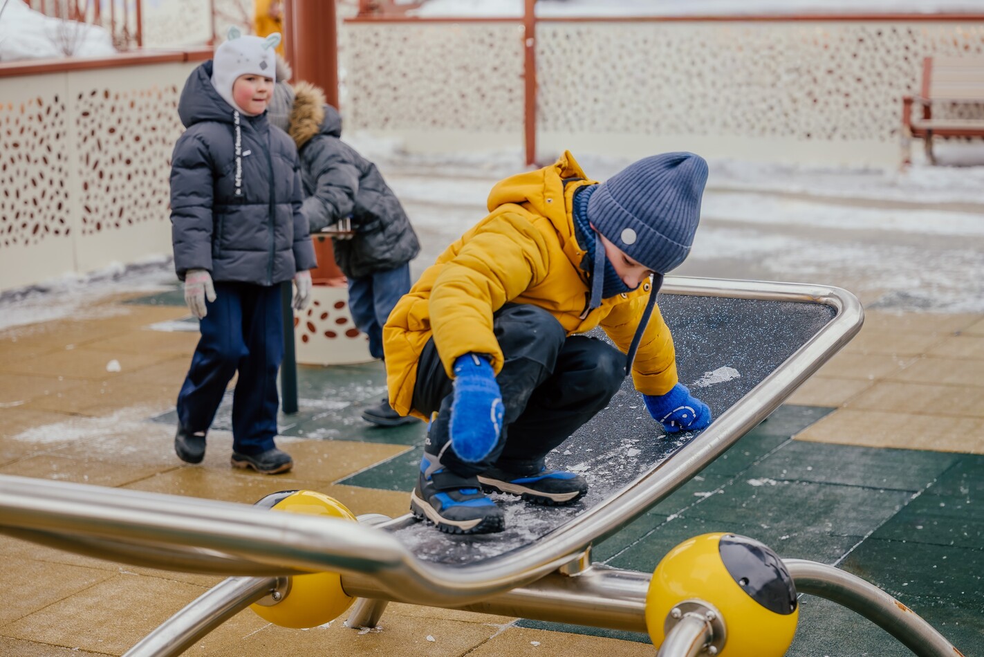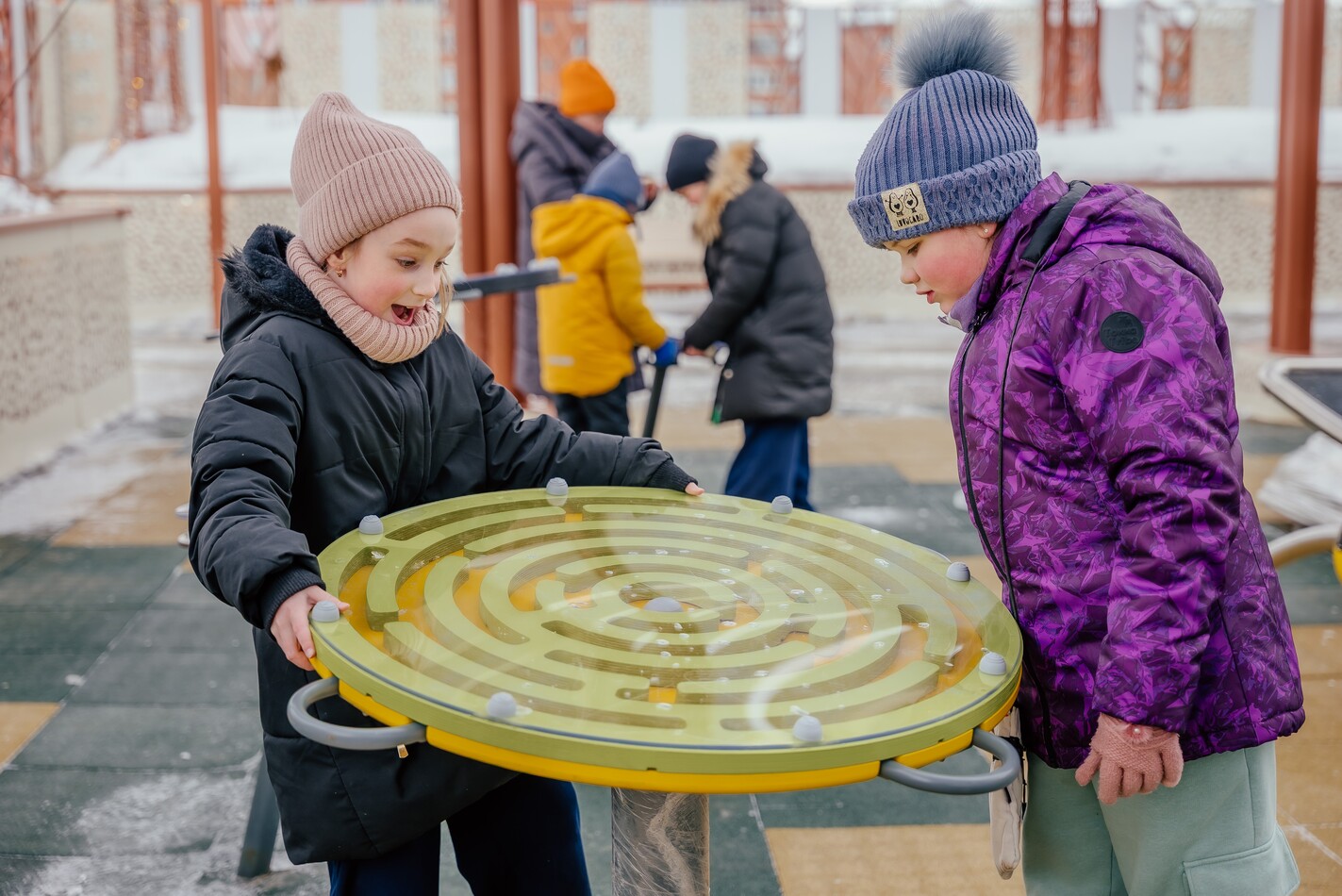 Но это пока он вместе с другими ребятами не обследовал всю детскую зону стилобата. Верёвочный парк с качелями, бельчатник, нейротренажёры, уличная библиотека с книжками с яркими картинками… Чего здесь только нет!