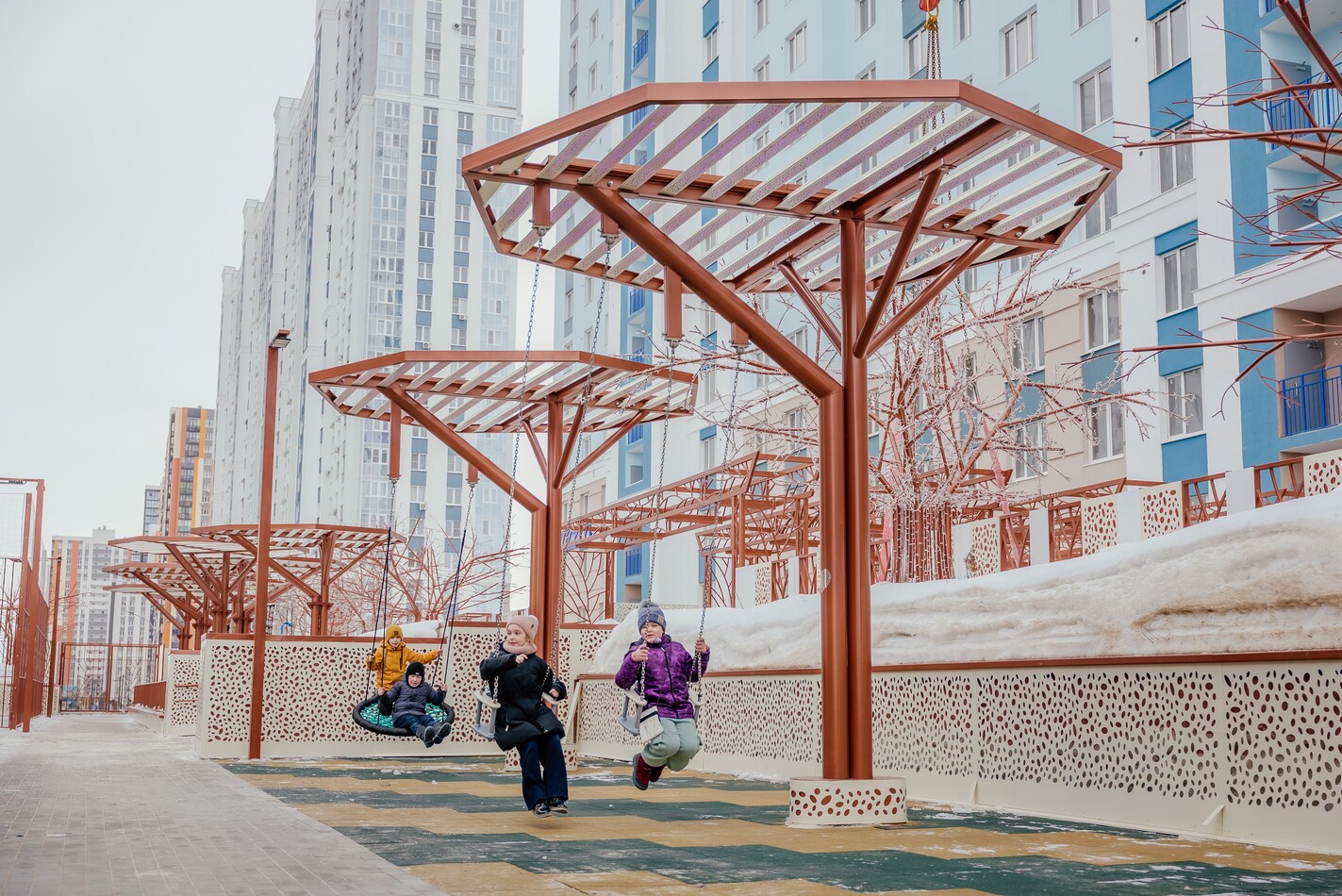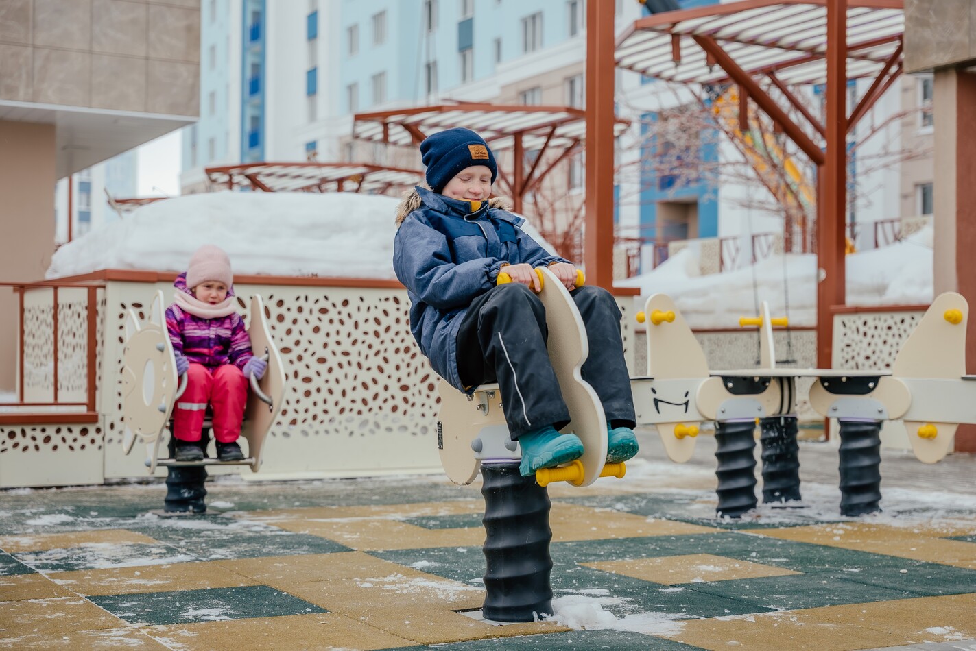 Выдача ключей вот-вот начнётся. А первыми уникальный стилобат с тёплой песочницей оценили дети из микрорайона Кальное.