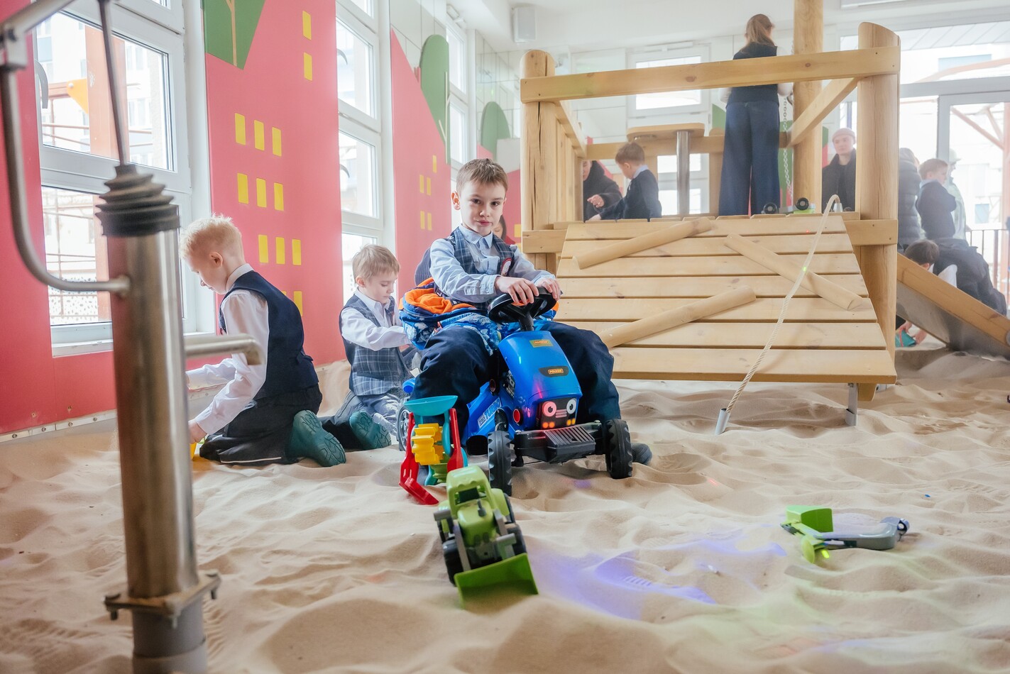 Максиму Сазонову 7 лет, он учится в первом классе и очень любит играть с друзьями во дворе. Совсем скоро он вместе с родителями поселится в квартире на 11-м этаже жилого комплекса «Еврокласс-4». А пока он с одноклассниками пришёл поиграть в тёплой песочнице, которую инженеры группы компании «Зелёный сад - наш дом» придумали и построили для маленьких жильцов.